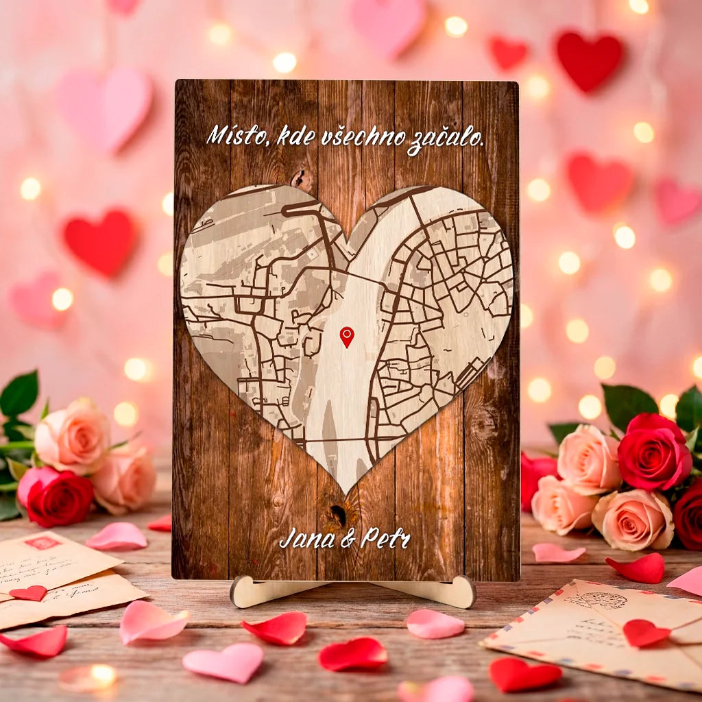 Personalizovaná stolní dekorace se srdcovou mapou a vlastním místem