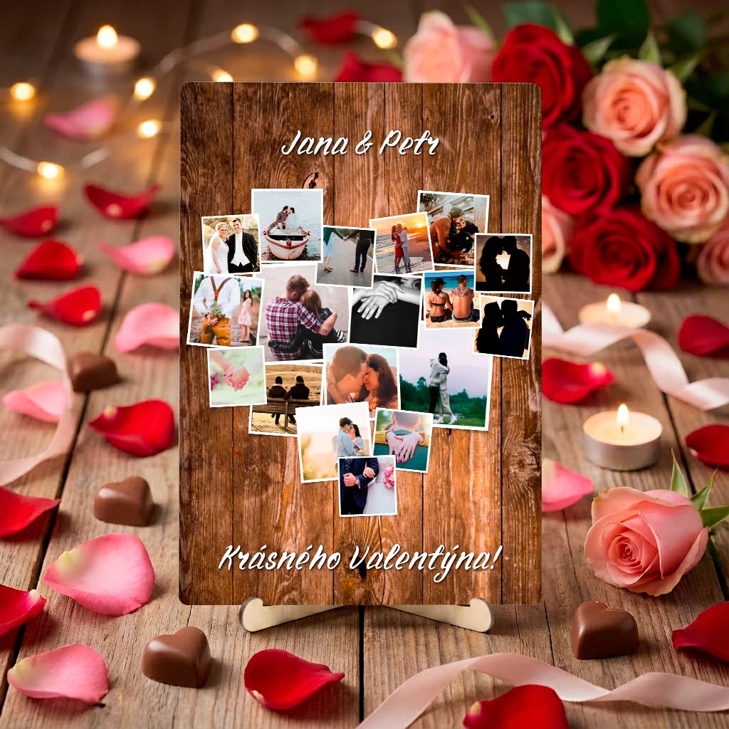 Personalizovaná stolní dekorace – srdcová fotokoláž s vlastním textem