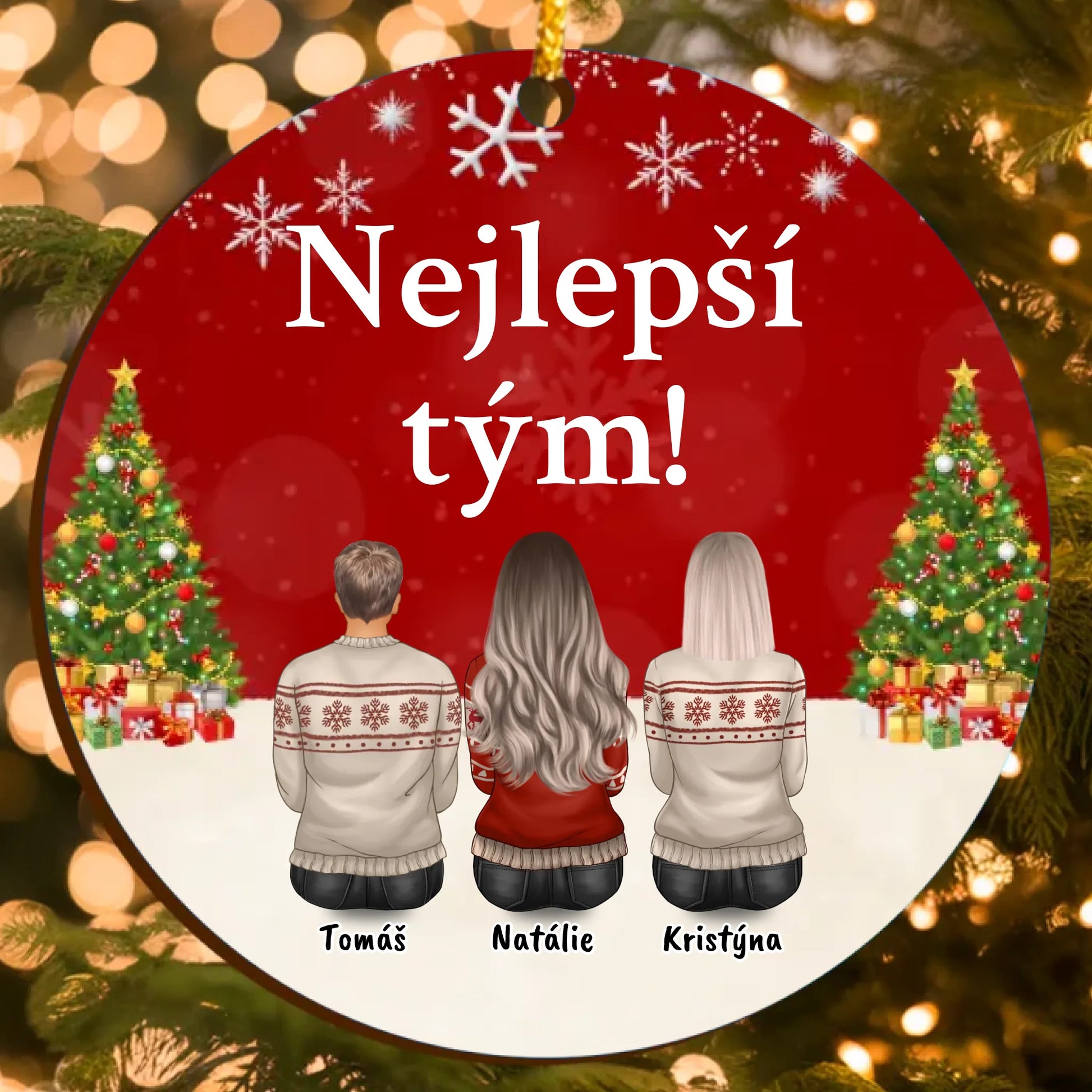 Vánoční Ozdoba pro Tým s Personalizovanými Postavami a Vlastním Textem (až 6 osob)
